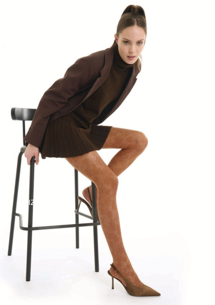 A harisnyanadrág kifinomult virágmintája diszkréten díszíti a lábakat, így feldobva a megjelenést. Tökéletes választás lehet, ha egy kis extra eleganciát szeretne csempészni az öltözködésébe, legyen szó akár egy irodai napra, akár egy esti programra.